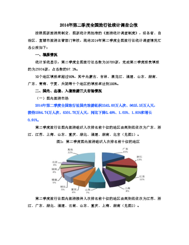 2014年第二季度全國旅行社統(tǒng)計調(diào)查公報