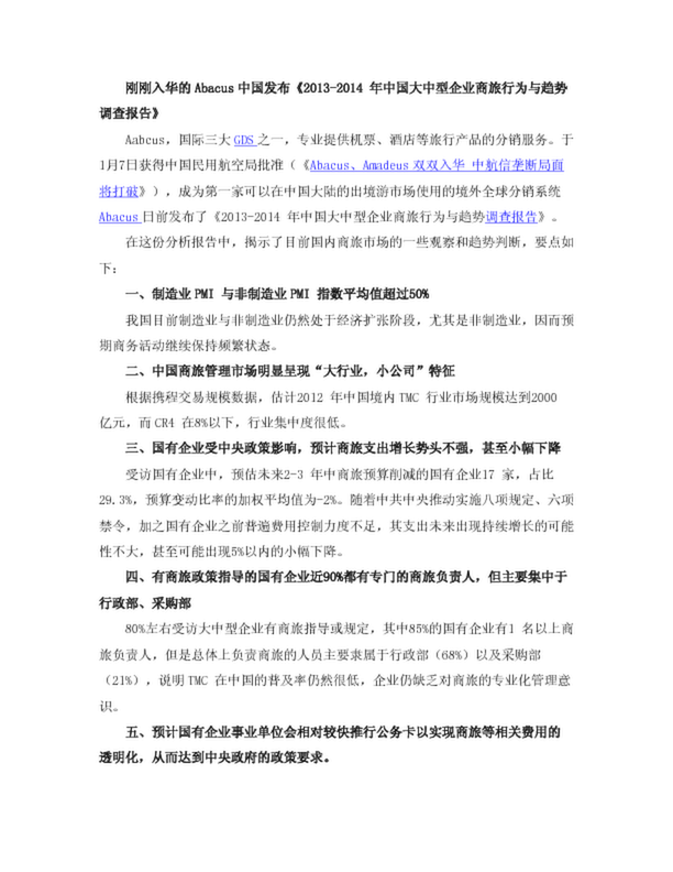 剛剛?cè)肴A的Abacus中國發(fā)布《2013-2014 年中國大中型企業(yè)商旅行為與趨勢調(diào)查報告》