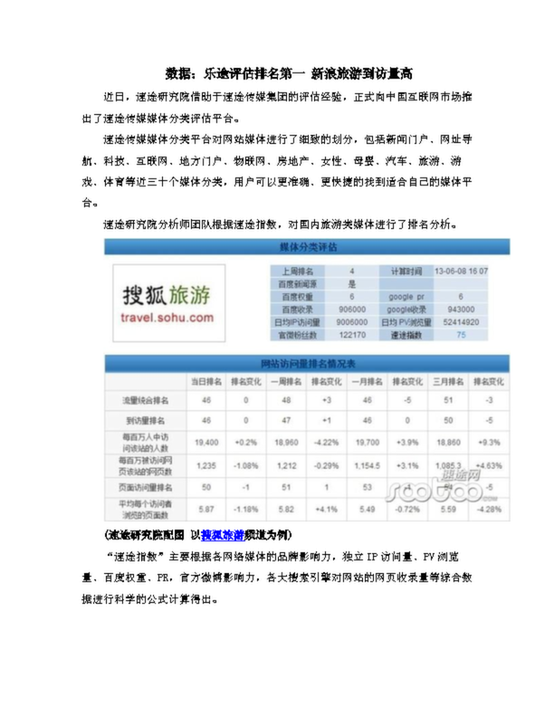 數(shù)據(jù):樂途評估排名第一 新浪旅游到訪量高