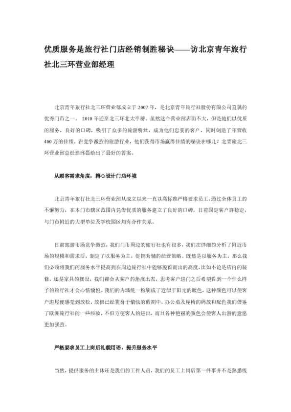 優(yōu)質(zhì)服務(wù)是旅行社門店經(jīng)銷制勝秘訣——訪北京青年旅行社北三環(huán)營業(yè)部經(jīng)理