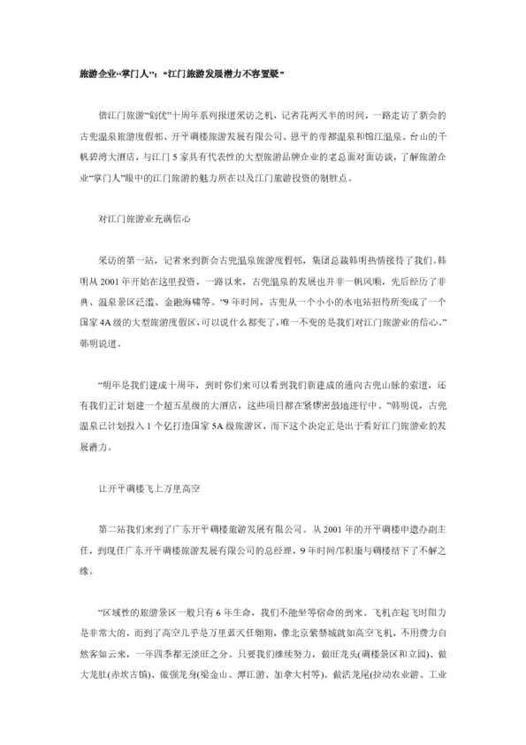 旅游企業(yè)“掌門人”:“江門旅游發(fā)展?jié)摿Σ蝗葜靡伞?/a>