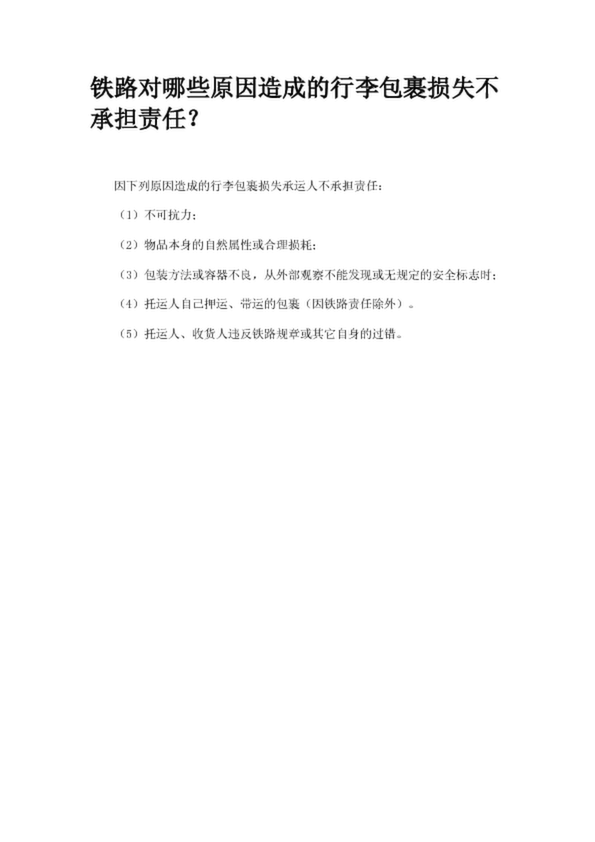 鐵路對(duì)哪些原因造成的行李包裹損失不承擔(dān)責(zé)任?