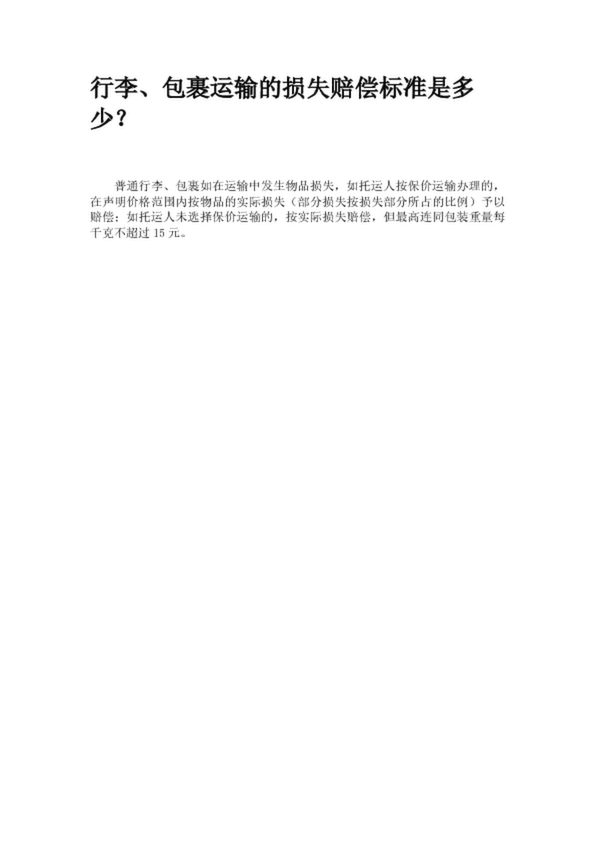 行李、包裹運輸?shù)膿p失賠償標準是多少?
