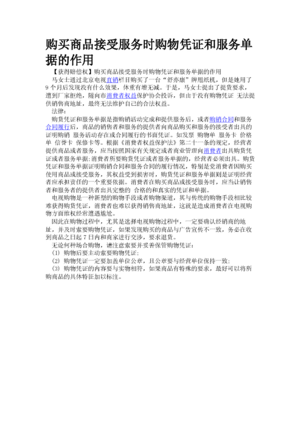 購買商品接受服務(wù)時購物憑證和服務(wù)單據(jù)的作用