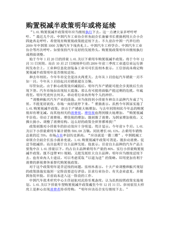 購置稅減半政策明年或?qū)⒀永m(xù)