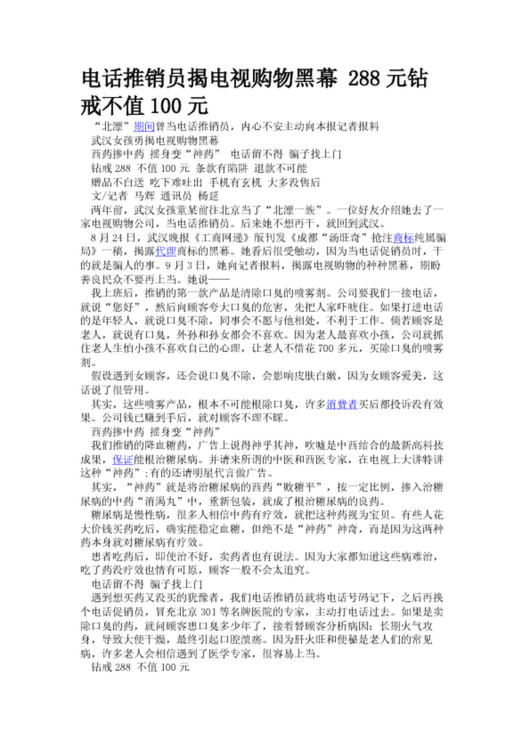 電話推銷員揭電視購物黑幕 288元鉆戒不值100元
