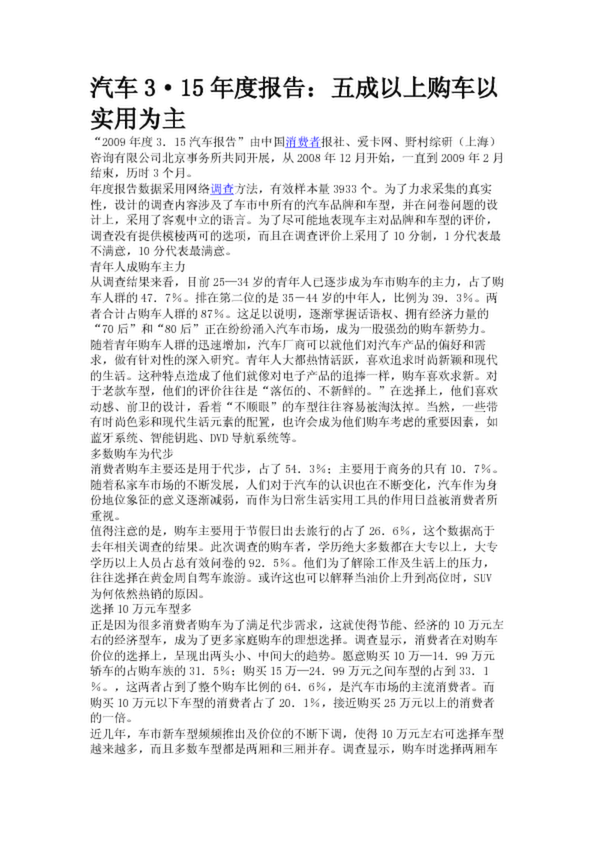 汽車3·15年度報告:五成以上購車以實用為主