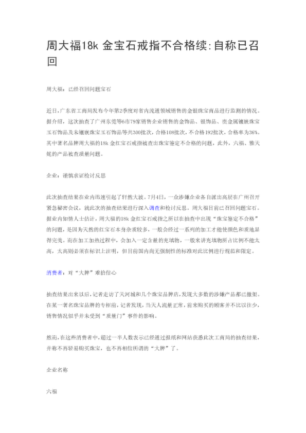 周大福18k金寶石戒指不合格續(xù)自稱已召回