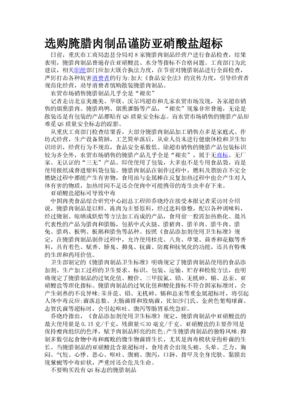 選購腌臘肉制品謹(jǐn)防亞硝酸鹽超標(biāo)