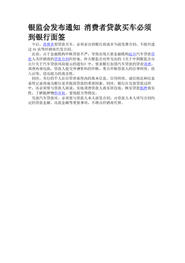 銀監(jiān)會發(fā)布通知 消費者貸款買車必須到銀行面簽