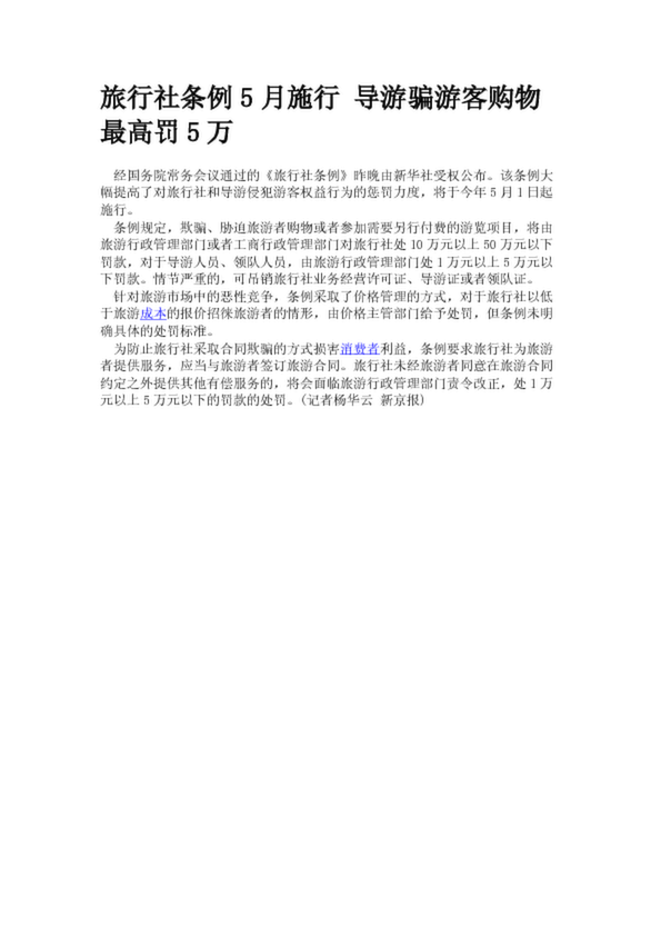 旅行社條例5月施行 導(dǎo)游騙游客購物最高罰5萬