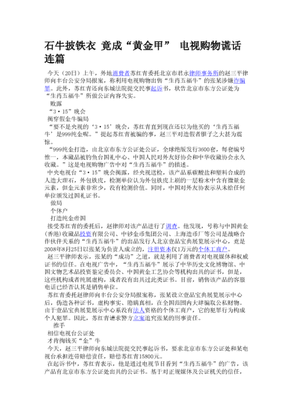 石牛披鐵衣 竟成“黃金甲” 電視購物謊話連篇