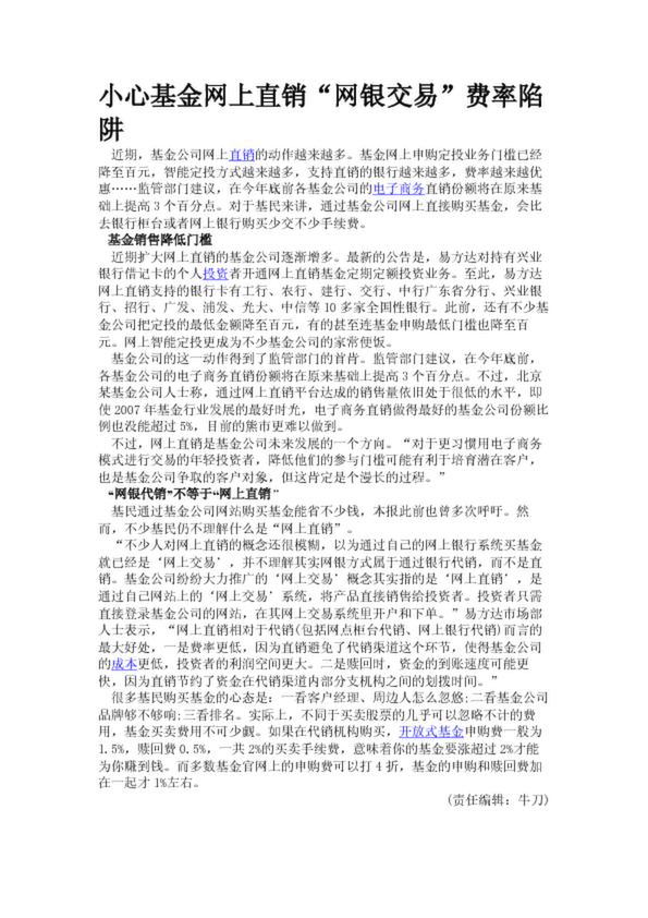 小心基金網(wǎng)上直銷“網(wǎng)銀交易”費(fèi)率陷阱