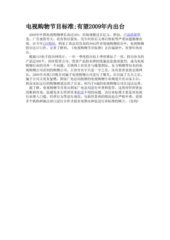 電視購物節(jié)目標準;有望2009年內(nèi)出臺